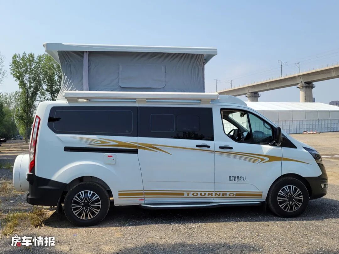 看到这里您会疑问,这不就是一辆商务车吗?那晚上在哪里睡觉呢?这个秘密机构就在车顶部,其实这是一辆带有直立升顶的房车,与我们常见的斜坡式升顶不同,直立升顶可以保证车内的生活空间从签到后保持一样的高度,大大的提升了内部的使用率。