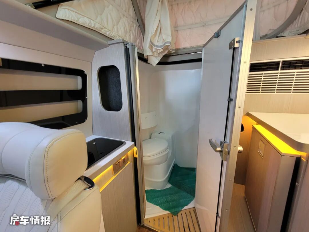 最后是车厢尾部的淋浴区,内部提供了马桶和淋浴花洒,能够满足基本的洗漱需求。