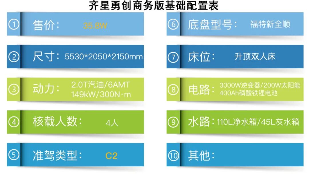 动力方面,这款房车搭载了一台2.0T的汽油发动机,匹配6速手自一体变速箱,最大功率为149kW,最大功率为300N·m,满足最新的国六排放标准,结合整车的长度,满足蓝牌C本驾驶的规定。驾驶室内部也提供了多功能方向盘,方便驾驶员后期操控。
