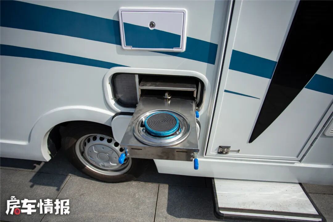 在车外安装了抽拉灶,在营地烹饪美食时可以减少油烟困扰,不需要费力清理车内环境。还可根据需求选择安装燃油灶或是燃气灶。
