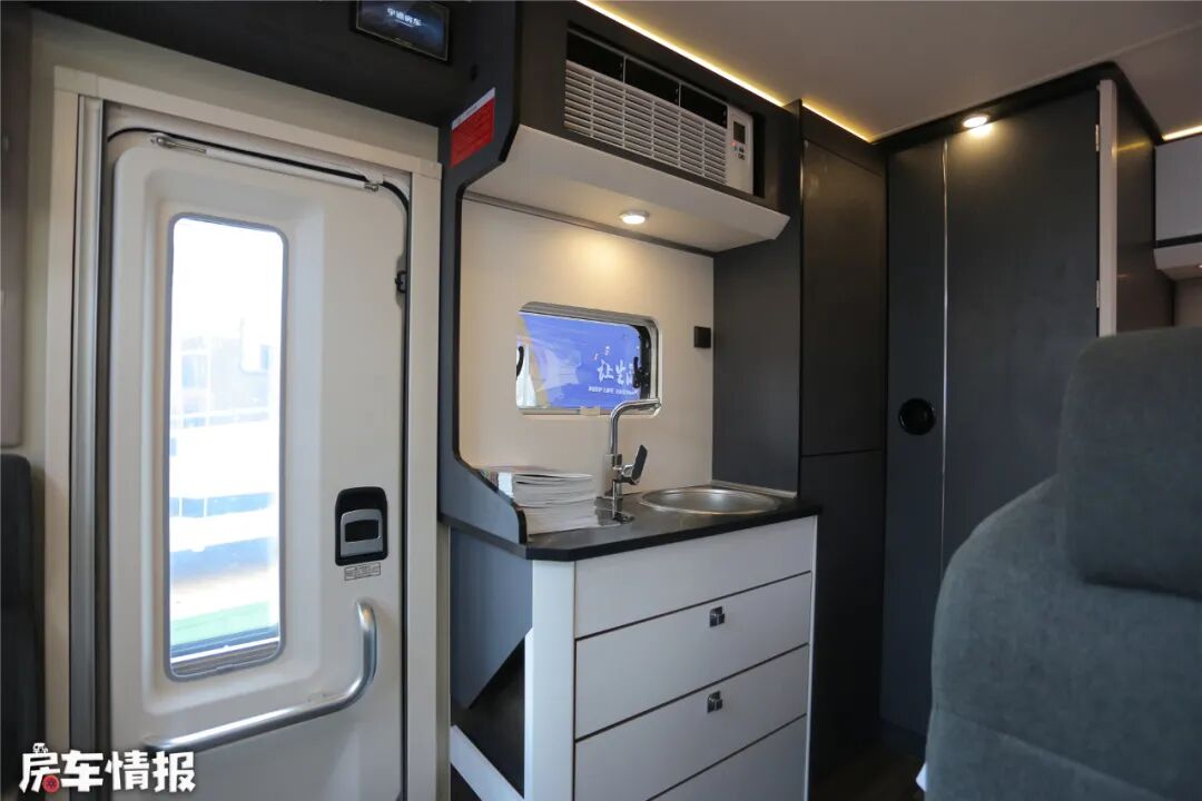 温度控制方面,该车采用了12V直流变频空调+8KW燃油加热器+换热式热水器,还可以配合前部的行车冷暖空调,实现高效控温,保证四季皆宜。