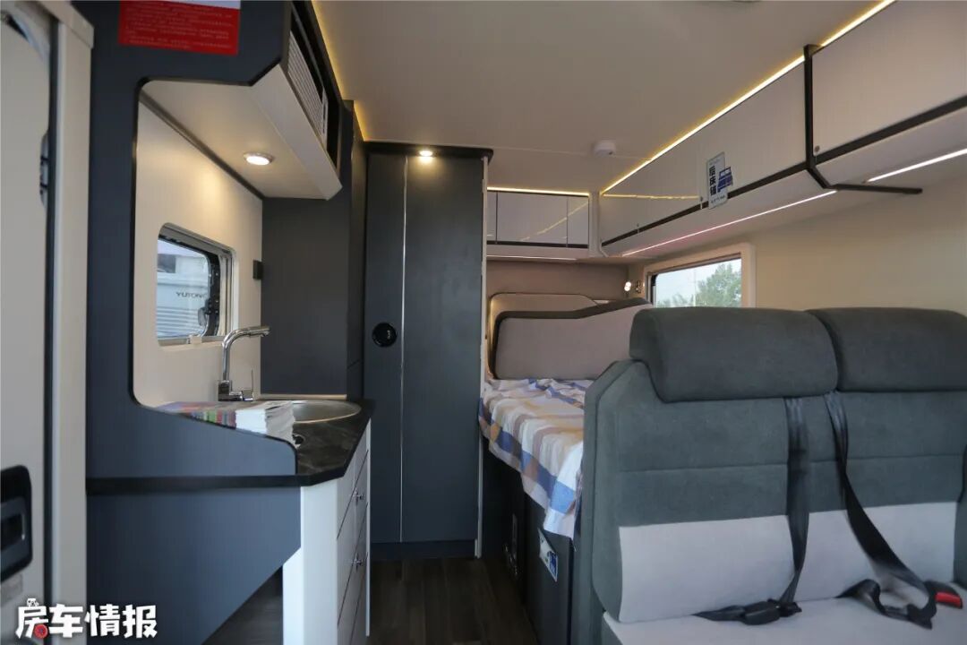 这款市场指导价39.8万元的宇通C520尊行版房车,基于汽油自动档的福特底盘,提供6座4卧的起居空间。该车外观现代时尚,全尺寸接近SUV,适合2至4口之家的轻度旅行,既能兼顾事业又能带家人轻松出游。下期再见!