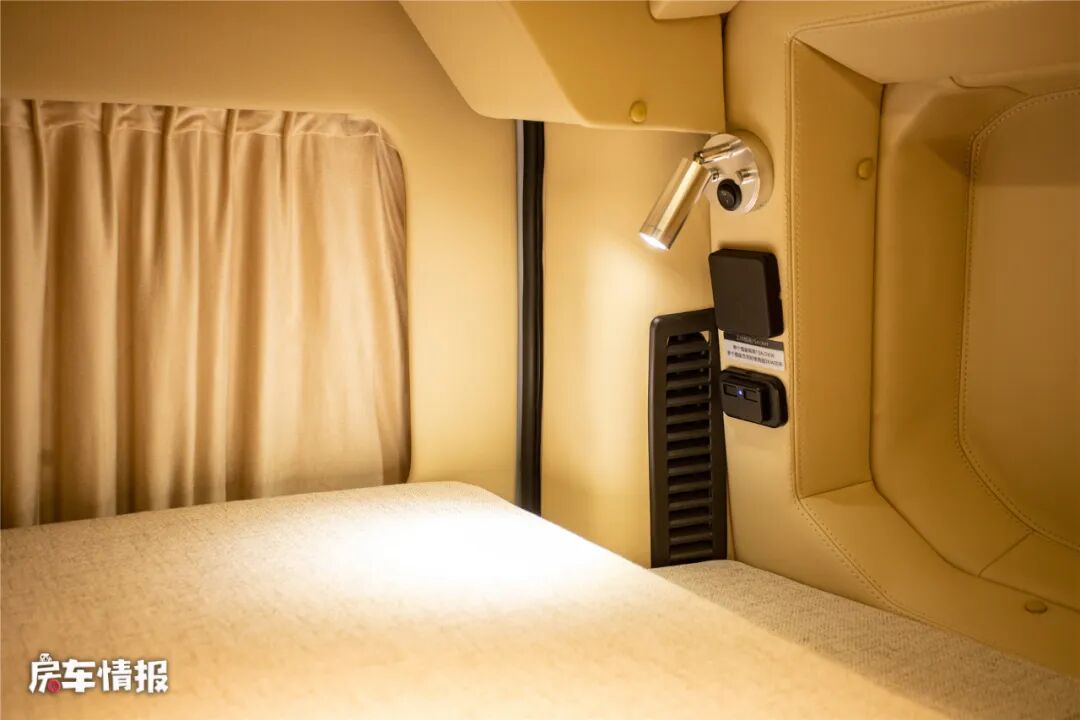 整个驾驶室也配有超厚的遮光隐私帘,保护我们的隐私安全。动力方面,2.0T柴油发动机, 9AT新款自动变速箱,最大功率 105kw,峰值扭矩 355NM。