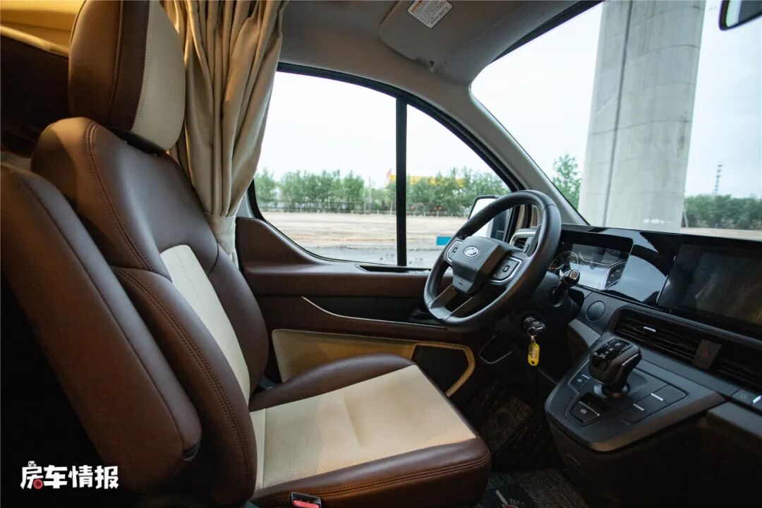 这款车采用的是最新款福特全顺底盘打造,可谓是和老款形成鲜明对比,做了全新升级,增加柴油自动挡变速箱,将原来的6AT升级到了9AT,前大灯也升级成为LED大灯。