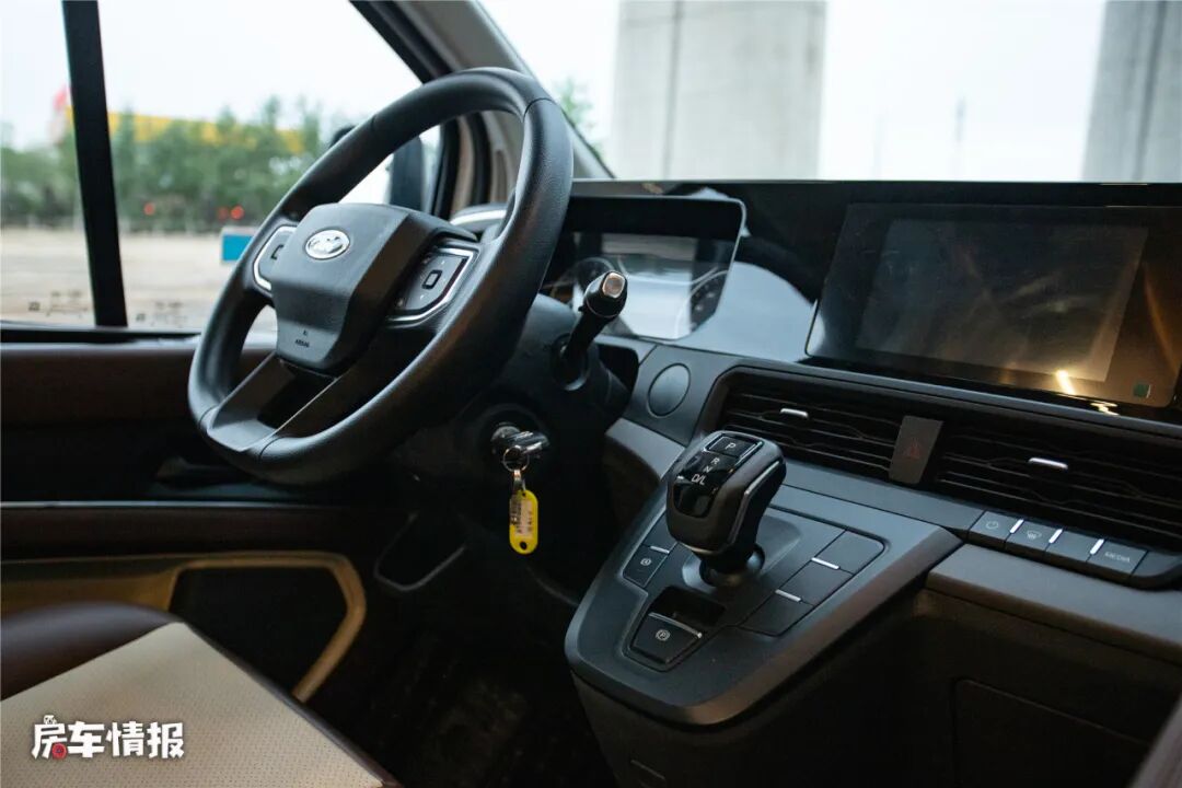 来到驾驶室,配备有多功能方向盘,电子手刹,自适应巡航系统,中控屏,如果你觉得屏幕小,你也可选择升级中控屏为12.3寸的。副驾驶座椅可以向后旋转,这样在驻车时,就可以和后方生活空间形成会客区域了。
