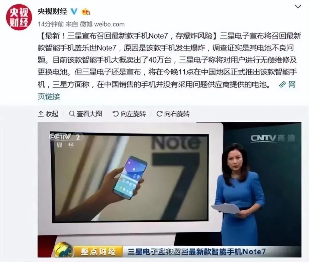 2016年,“三星Note7存在爆炸可能”的消息迅速引发热议,事实上,这款手机后续确实出现了多起爆炸现象,为此,三星很快就宣布将会召回已经销售的40万台Note7,可是竟然不包括在中国市场销售的机型。