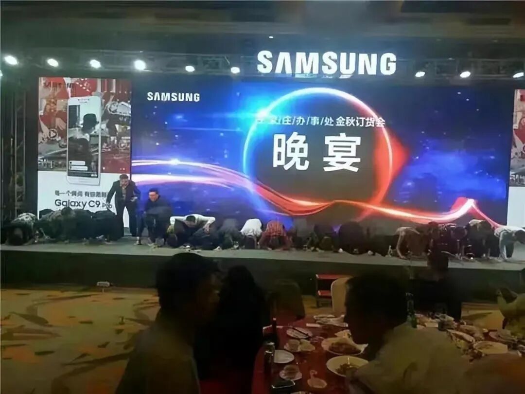 于是三星就开始一系列的补救措施,据悉,在一次经销商的订货晚会上,为了获得众多经销商的支持,三星电子的一众高管集体下跪。