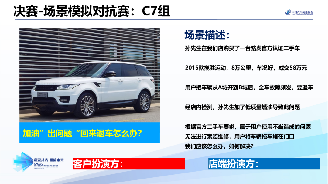 我们的初赛的实战对抗题,基本上都是4S店在二手车置换业务和初级零售阶段所遇到的店端实战情况。