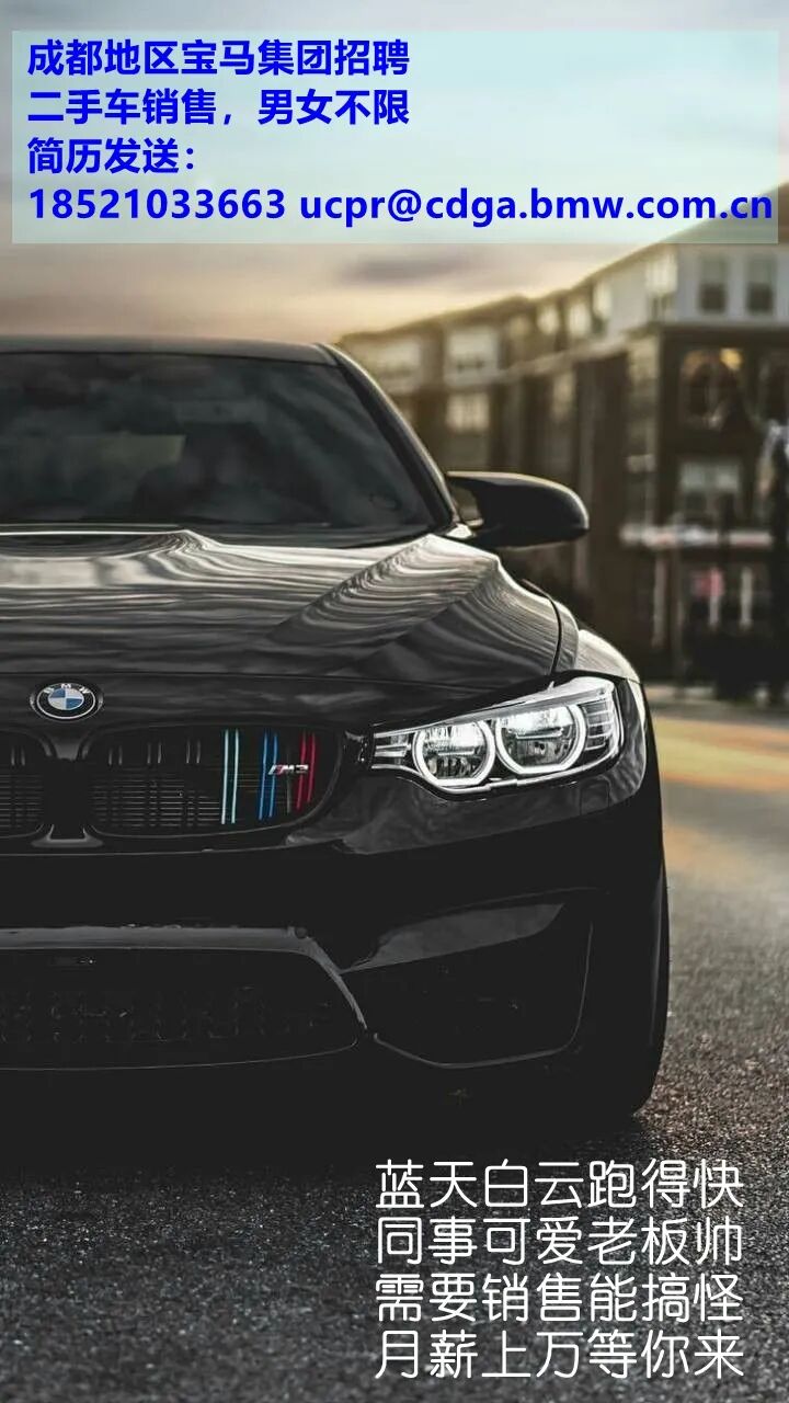 宝马品牌集团,90后老板,全国前三帅气,团队俊男美女多,团队氛围好,只要你行,你就能行,二手车销售紧缺!