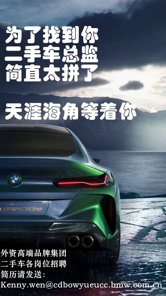 外资品牌高端汽车二手车各岗位储备招聘,待遇稳定,体系健全,主管靠谱!