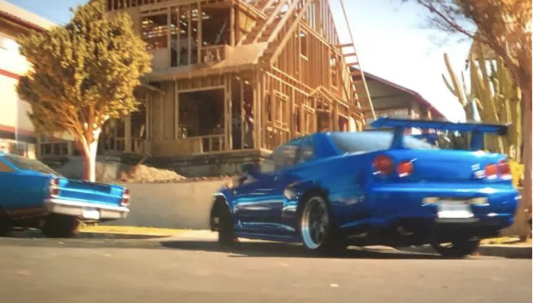 影片即将结束,出现了《速度与激情》系列中的灵魂车辆,日产GT-R R34!想必这款车不用过多介绍,什么RB26发动机,过千匹马力的改装潜力,经久不衰的外观设计等等等,GT-R R34就是日本高性能车的图腾,与NSX一样,不管现在最新款式多么强大,R34也是永远无法超越的神车!