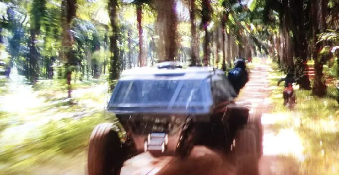 影片开头在丛林山谷的追车戏份,反派驾驶的Flip Car造型神似《速7》中郭森·斯坦达驾驶的那辆XC2V Flypmode越野车,不过不难看出这并非基于已有车型打造的改装车,而是一辆彻彻底底的Flip Car。