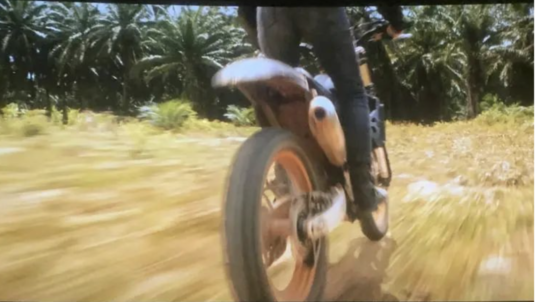 虽然这款车在剧中外观改装较大,但根据金色的前减振(KYB)和油箱前面的散热水箱与后平叉来看,还是很容易分辨出是一款搭载449cc水冷发动机的YZ450F,雅马哈在90年代末期开发这款四冲程越野车的目的是为了在比赛中对抗250cc级别的两冲程车型。