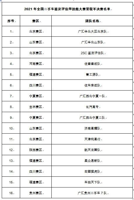 6月18日,2021全国二手车鉴定评估师技能大赛复赛圆满落幕。经过激烈比拼,16支队伍脱颖而出,成功晋级半决赛。