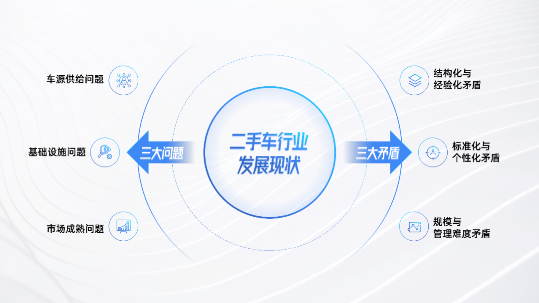 所以我们总结了行业的三大问题与三个矛盾,通过探索这些问题和矛盾的解决方案,思考二手车往后走的时候,最大的机会在什么地方。
