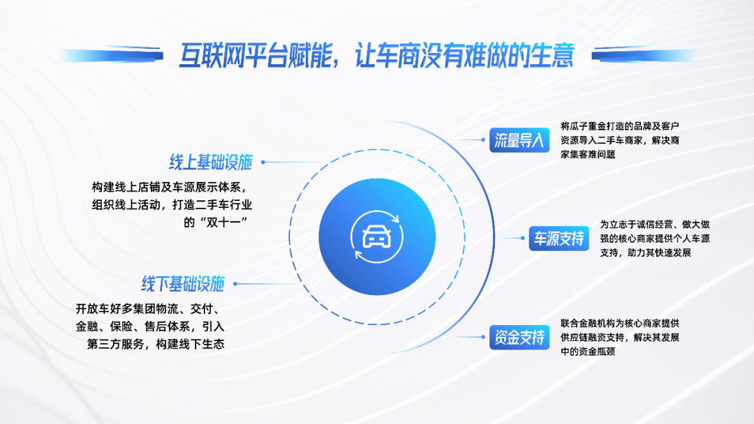 通过线上和线下基础设施的搭建,为行业建立起生态发展的平台基础,从而让车商与用户能够实现正向迭代和循环发展。