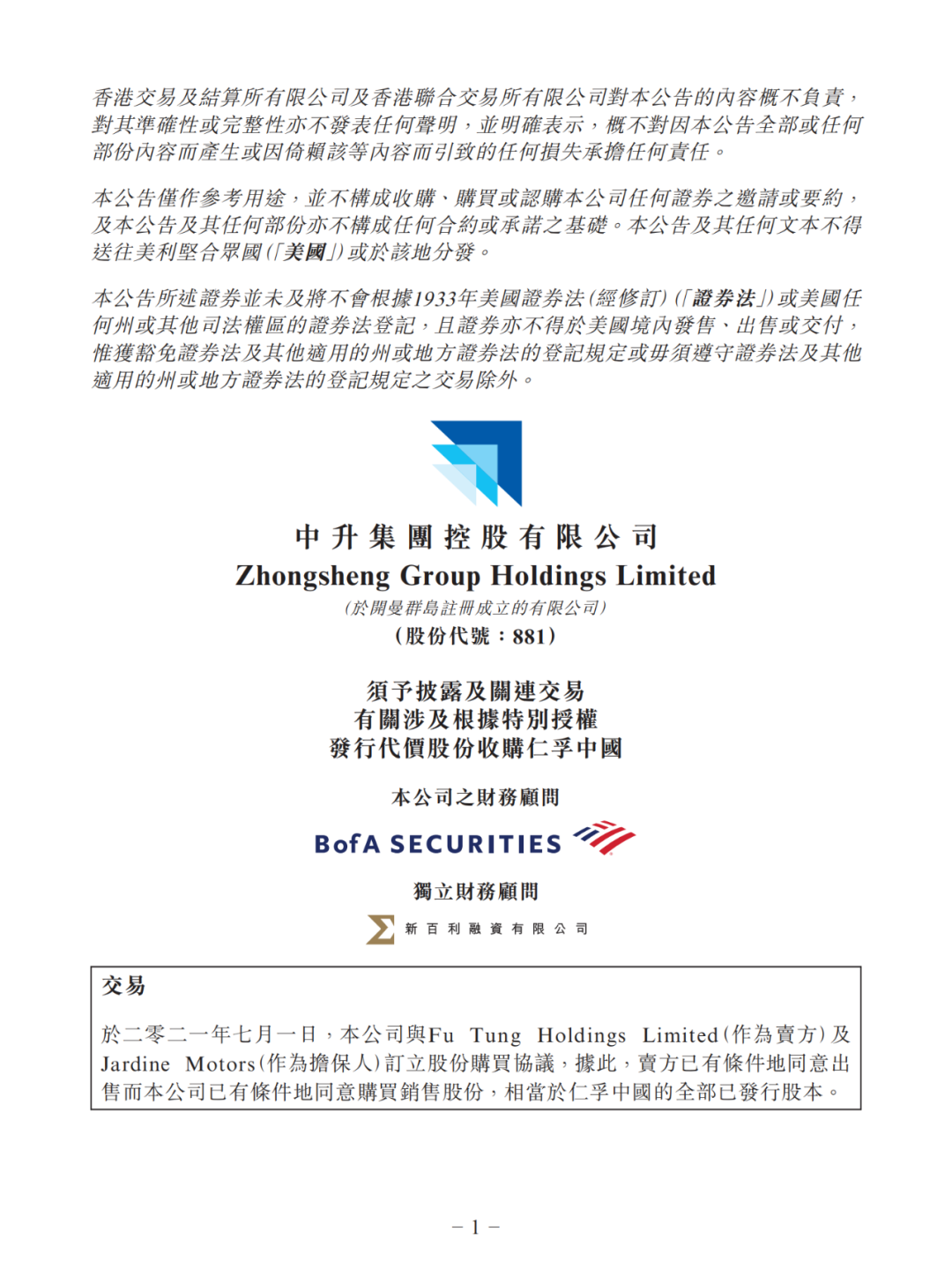 2021年,中国汽车经销商集团百强排名第2的中升集团控股有限公司将收购排名第24的仁孚汽车(中国)汽车销售有限公司。