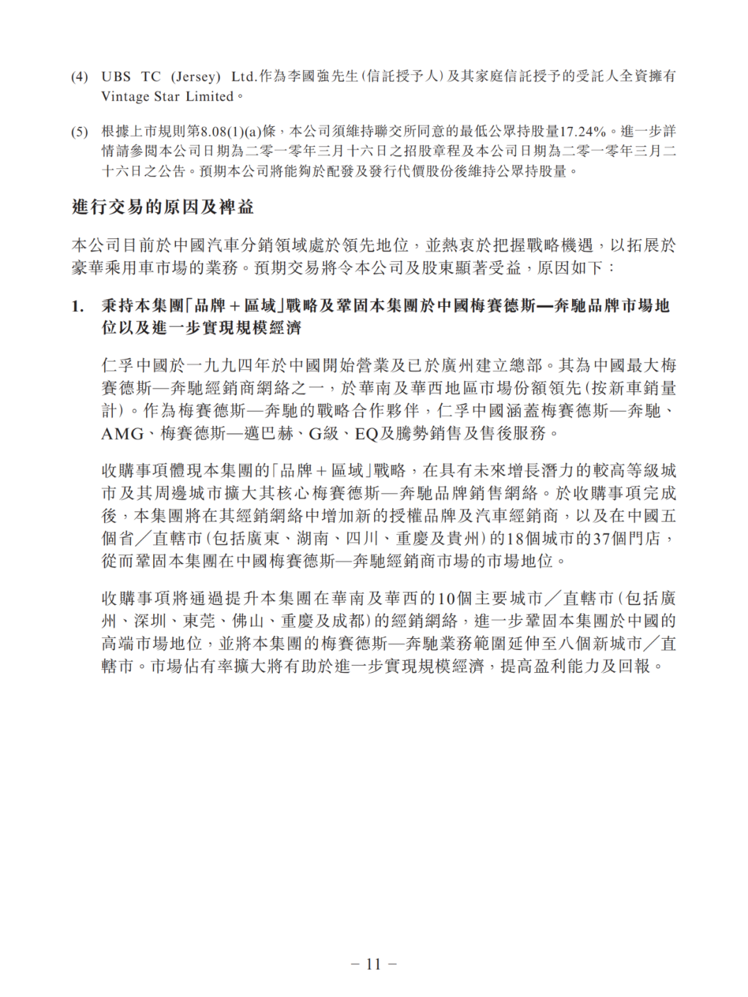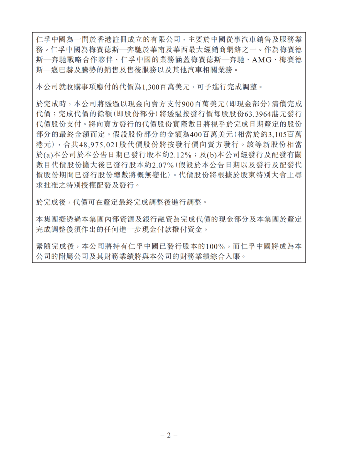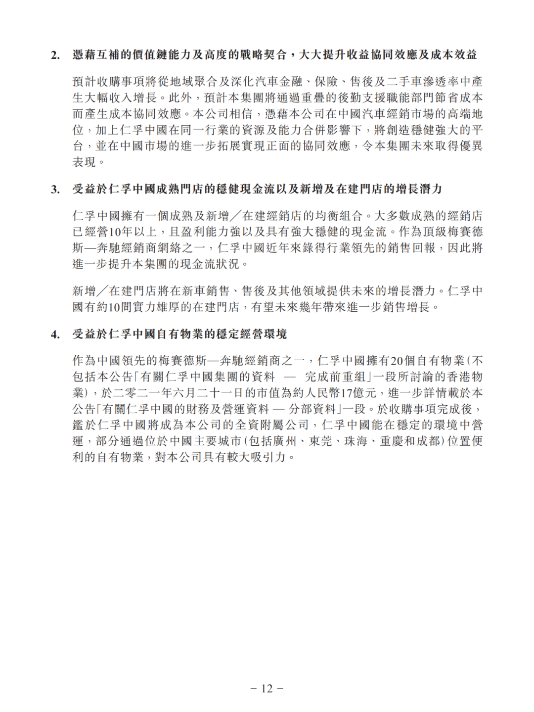 收购成功后中升集团的年度销售量合计将超过65万辆,营业总收入超过1675亿元,虽然在年度销售量方面与排名第一的广汇集团101.87万辆仍有数量差距,但是由于中升集团的高端品牌占比多,仁孚汽车是华南地区最大的老牌奔驰品牌汽车经销商集团。