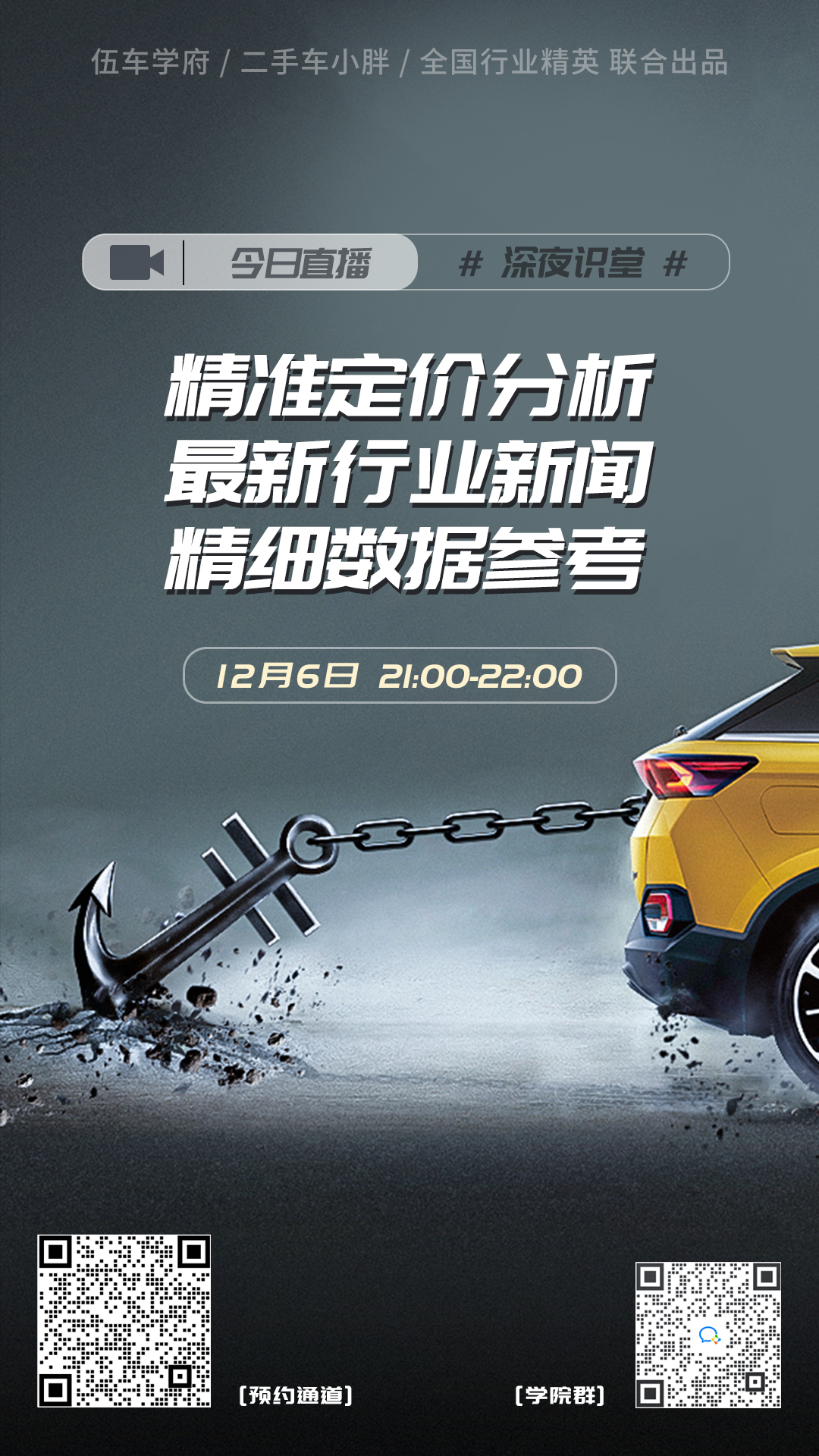 伍车学府/二手车小胖说,每周日晚深夜识堂是全国二手车精英学习交流的直播栏目,我们每周都会有精准定价案例分析。