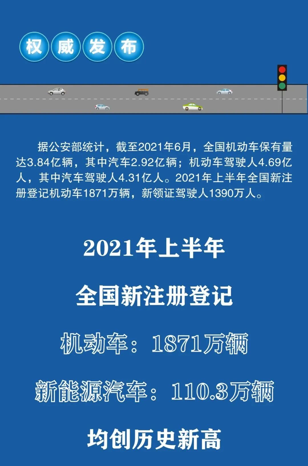 2021年上半年全国新注册登记机动车1871万辆,新领证驾驶人1390万人。