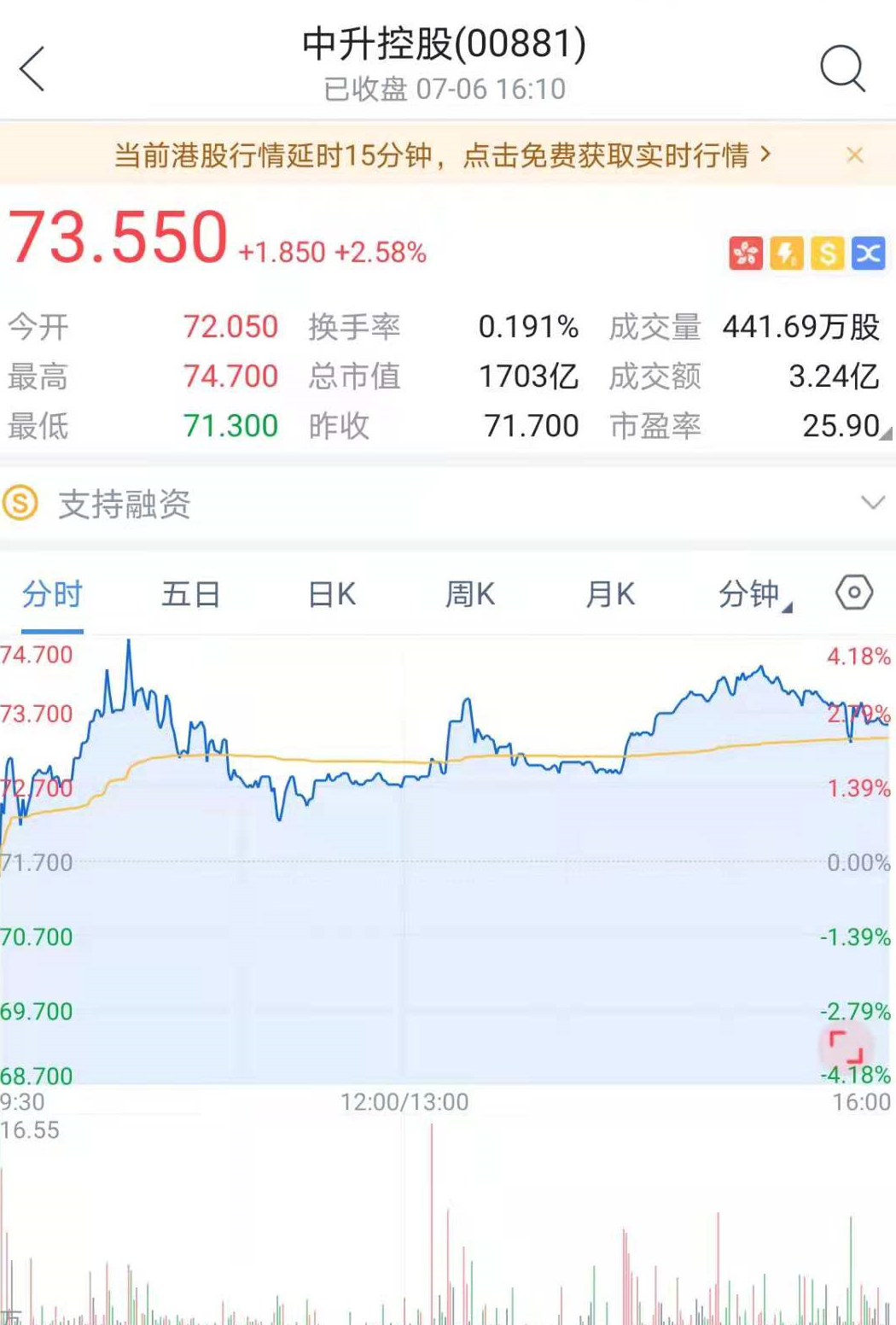 在官宣高瓴资本大手笔投资中升控股后,中升控股股价在7月5日一度大涨超过10%,但随后由于大盘环境影响尾市涨幅有所回落。