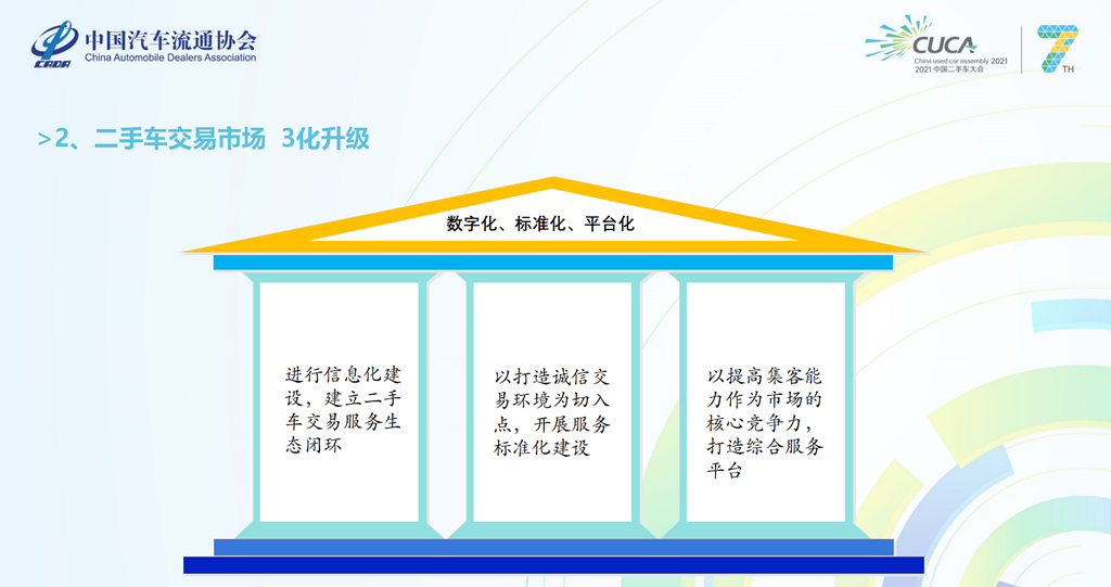 二手车交易市场要三化升级。我记得我在长沙的时候专门提到了,什么叫三化?一是数字化,数字化我们要有系统,有信息,我们有很多专门做这样服务的机构,可以跟他们去结合。