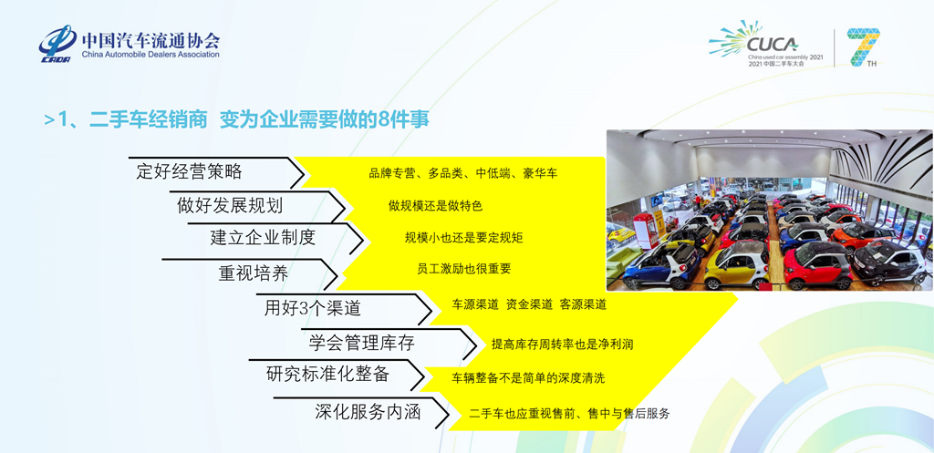 第七是要标准化,我们说车商怎么标准化?通过标准化来提高管理效率、经营效率。