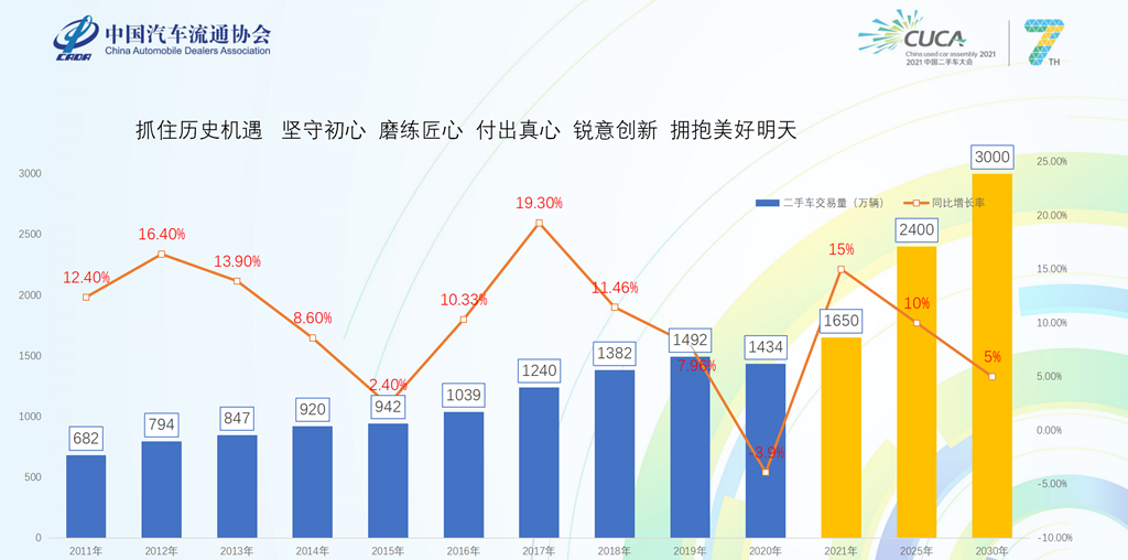 在2021年二手车交易量会突破1600万辆,有可能在1650-1700万辆这中间,增长率达到15%左右。