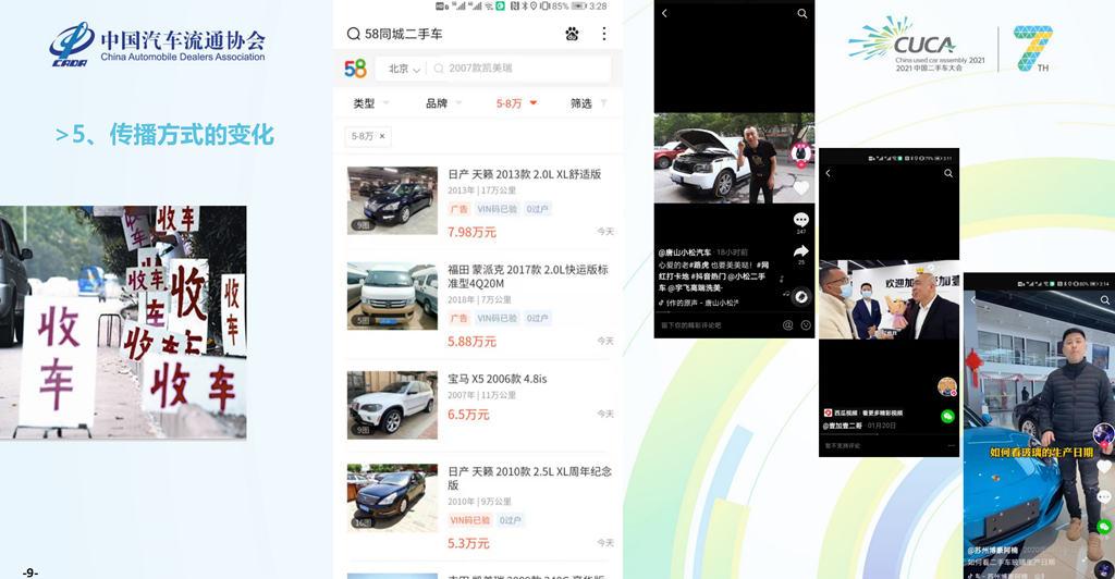 有了互联网以后,我们很多的传播从过去的平面媒体转向了互联网媒体,随着5G的到来,从互联网到视频,到直播,在座的很多二手车经销商朋友都成了我们的网红,昨天有几位百万粉丝的网红同台跟大家分享,我想未来一个时期应该说直播、短视频会成为我们新生态的一个传播方式。