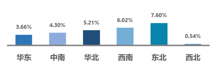 2021年6月,全国六大区环比均有所增长,其中华北、西南、东北3个区域二手车交易量环比超过5%。