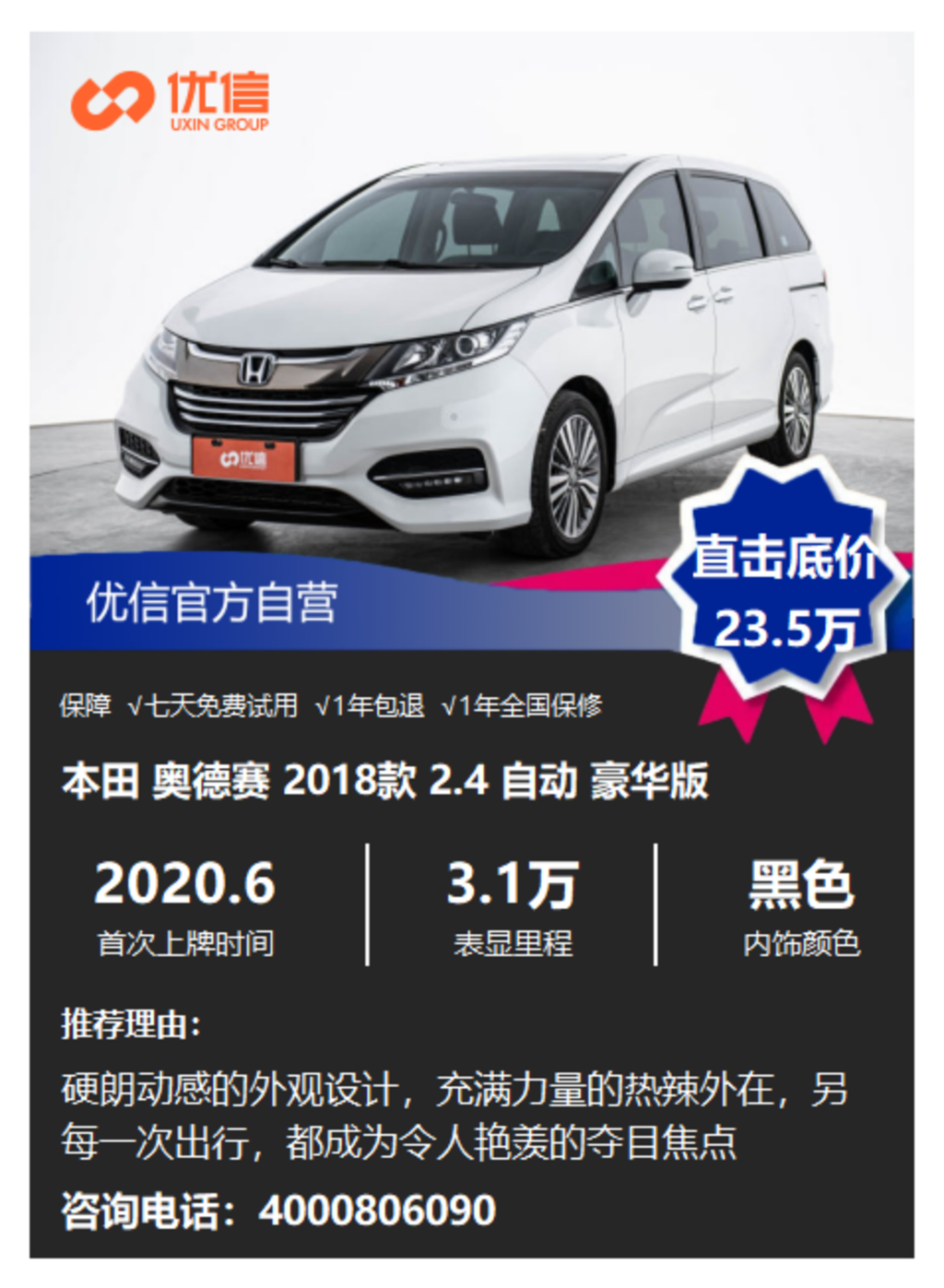 广州本田奥德赛比同门的东风本田艾力绅更受北方客户欢迎,其实艾力绅欧规更舒服,奥德赛更适合家庭,虽然这款车是18款豪华,但是上牌2020年,市场整体供需稳定,这个特价比较合适,颜色、公里、年份、配置,绝对比目前市场上库存的车辆性价比好点,可以考虑。