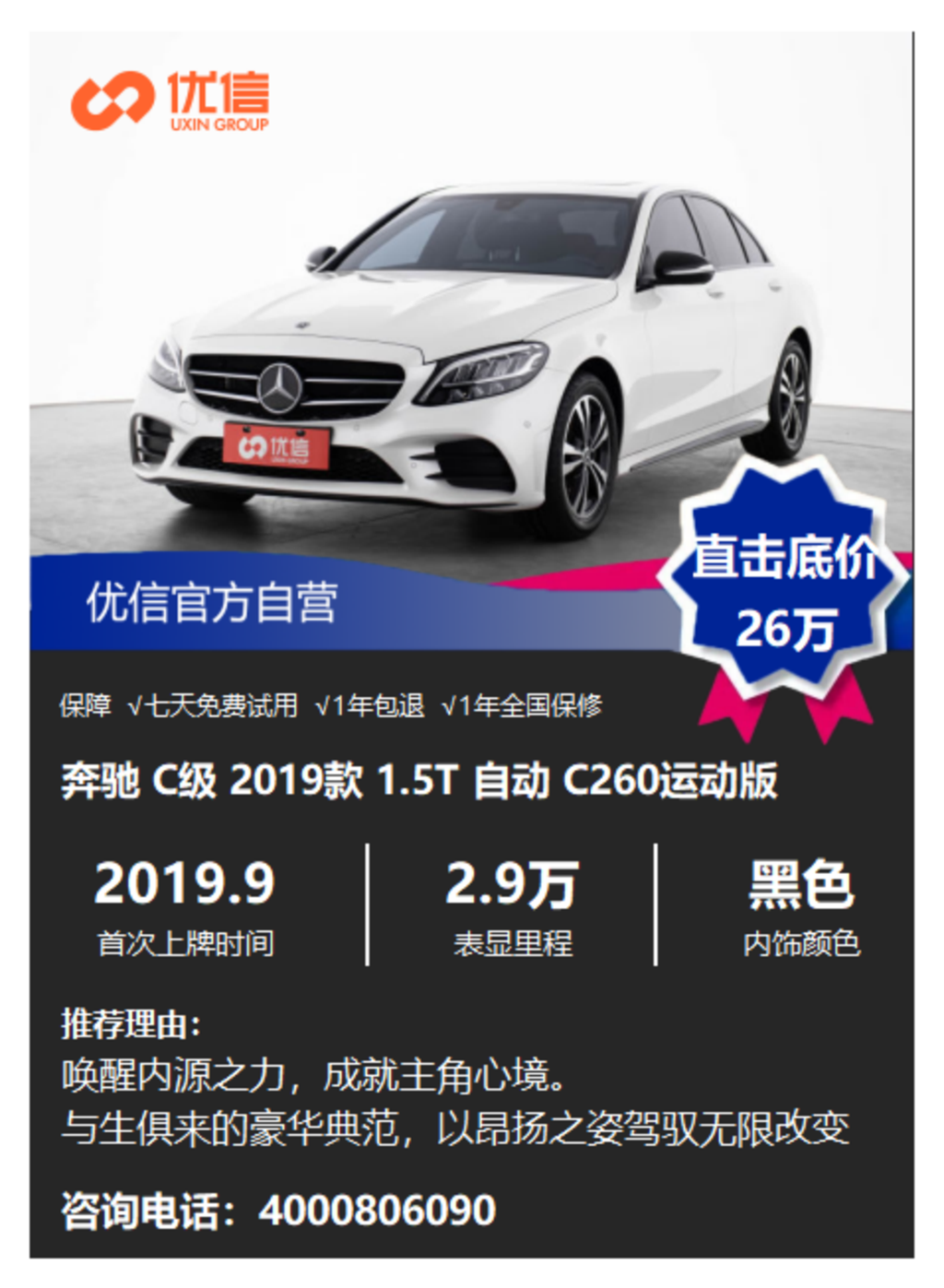 但是,新车涨价是暂时的,看看年底,不过市场上这年份这车况这颜色的不多,唯一问题是改装的这个260,才1.5T机器,很多人觉得有点累,就看价格吧,26万算是良心价,不过胖哥特价的话,25.6万开回家才更合理。
