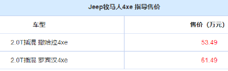 其0-96km/h的加速成绩在6s以内。Jeep牧马人4xe配备17kWh容量的电池组,其NEDC下的纯电续航里程为55km,总续航里程约为640km。