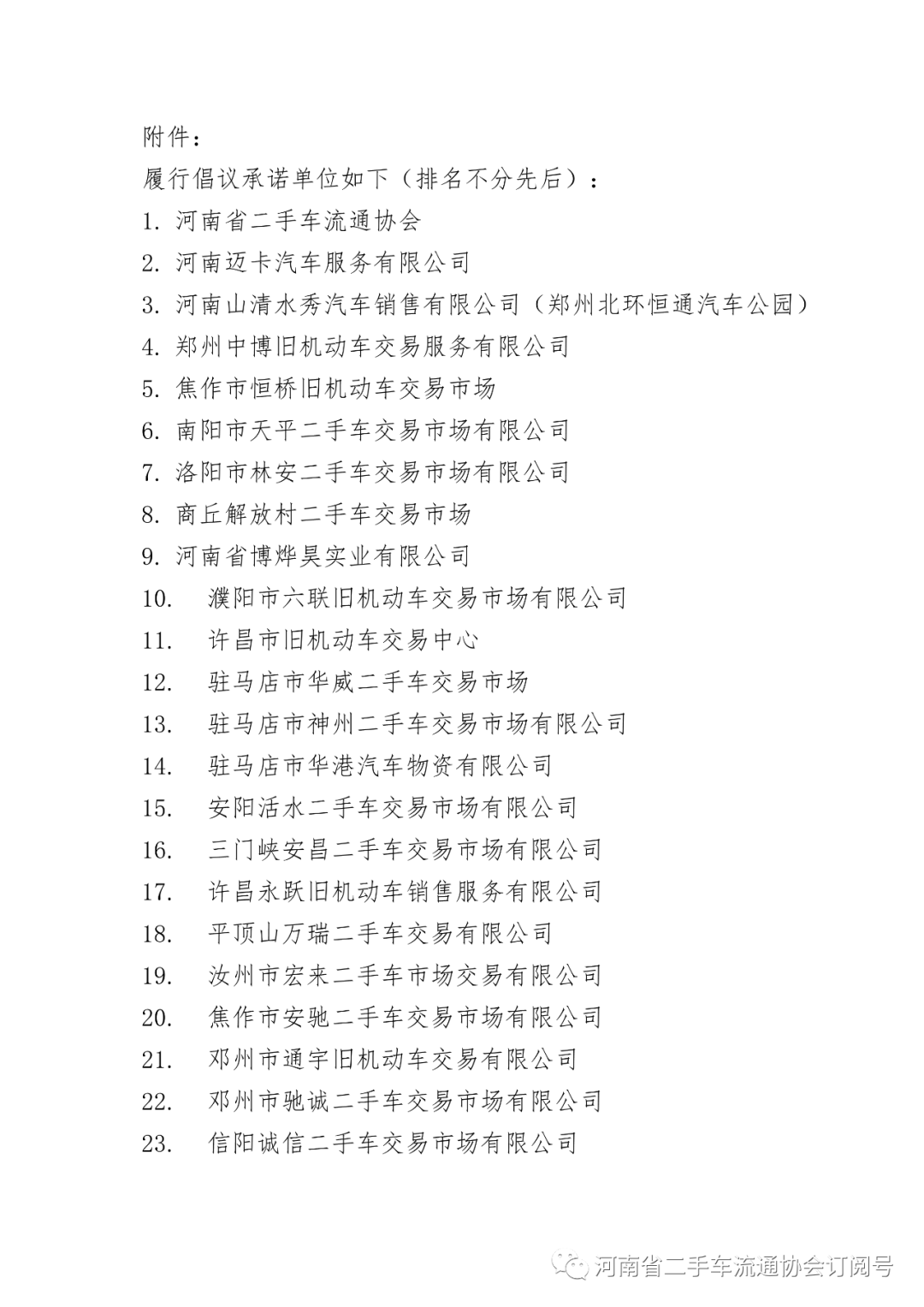 为杜绝虚假销售、避免以次充好,隐瞒泡水车事实,夸大不实宣传树立河南二手车行业诚信经营的形象,现发出如下倡议: