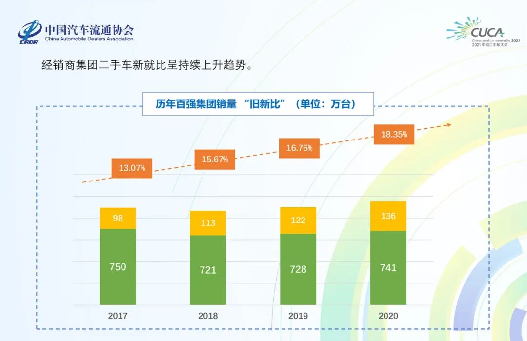 从2017~2020年的旧新比可以看出,从2017年的13.07%到2020年18.35%,四年的涨幅是5.28个百分点,旧车占比逐年增多,上升趋势非常明显。