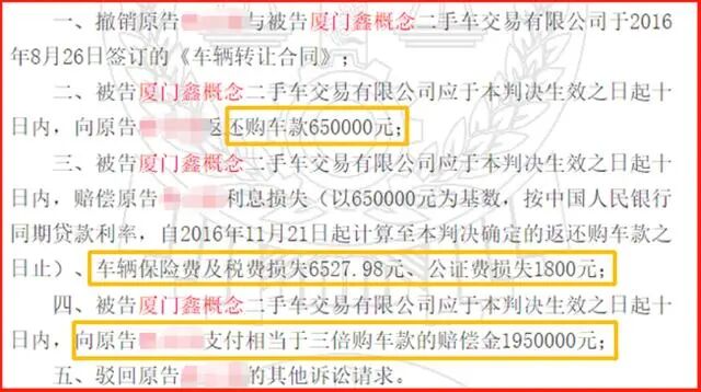 经过官方4S店的核实,这辆车确实经历过调表,也证实了二手车商的欺诈行为,一审给出的判决为:车行需要原价退车,并且还要另外赔偿195万,总计为260万。