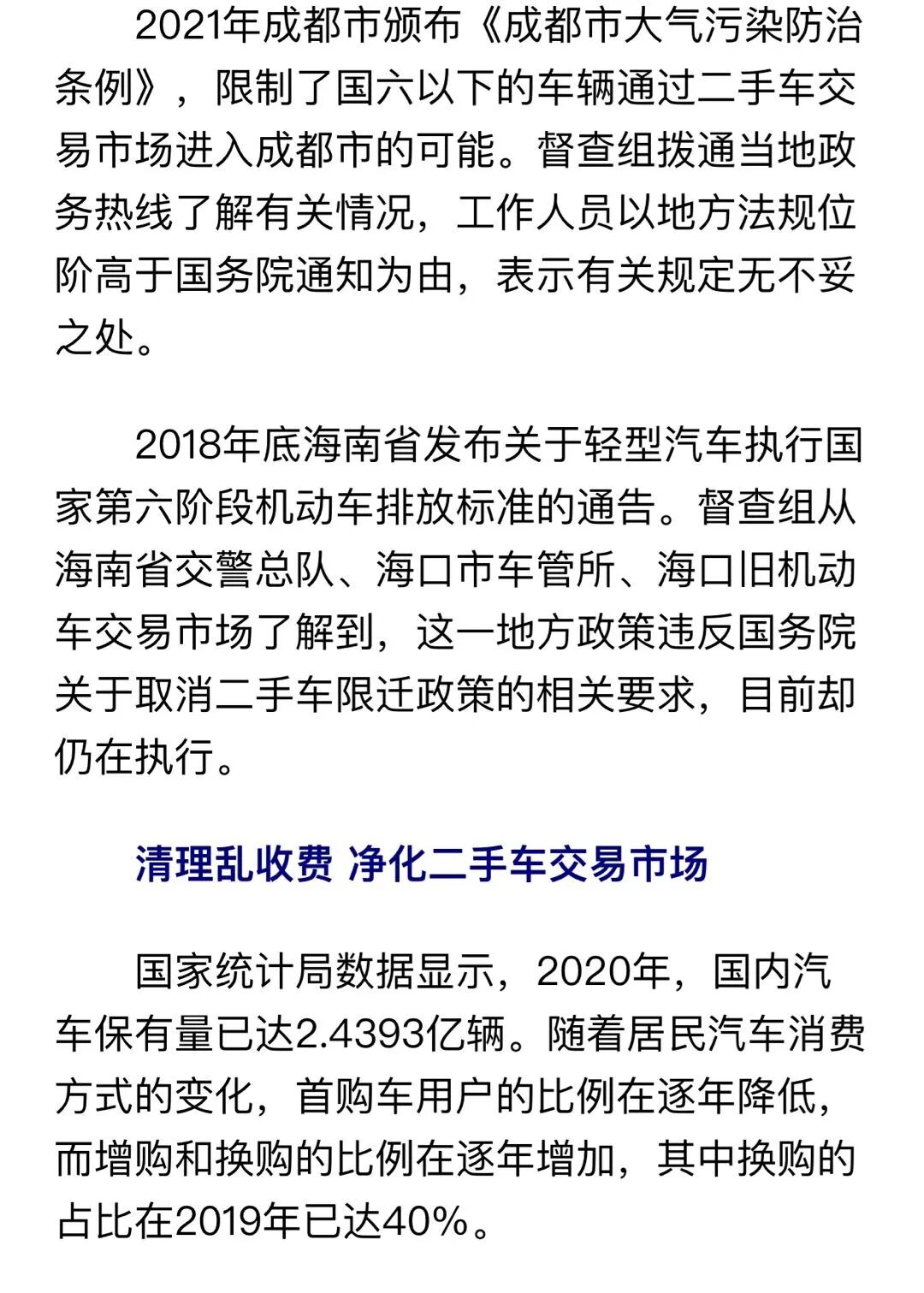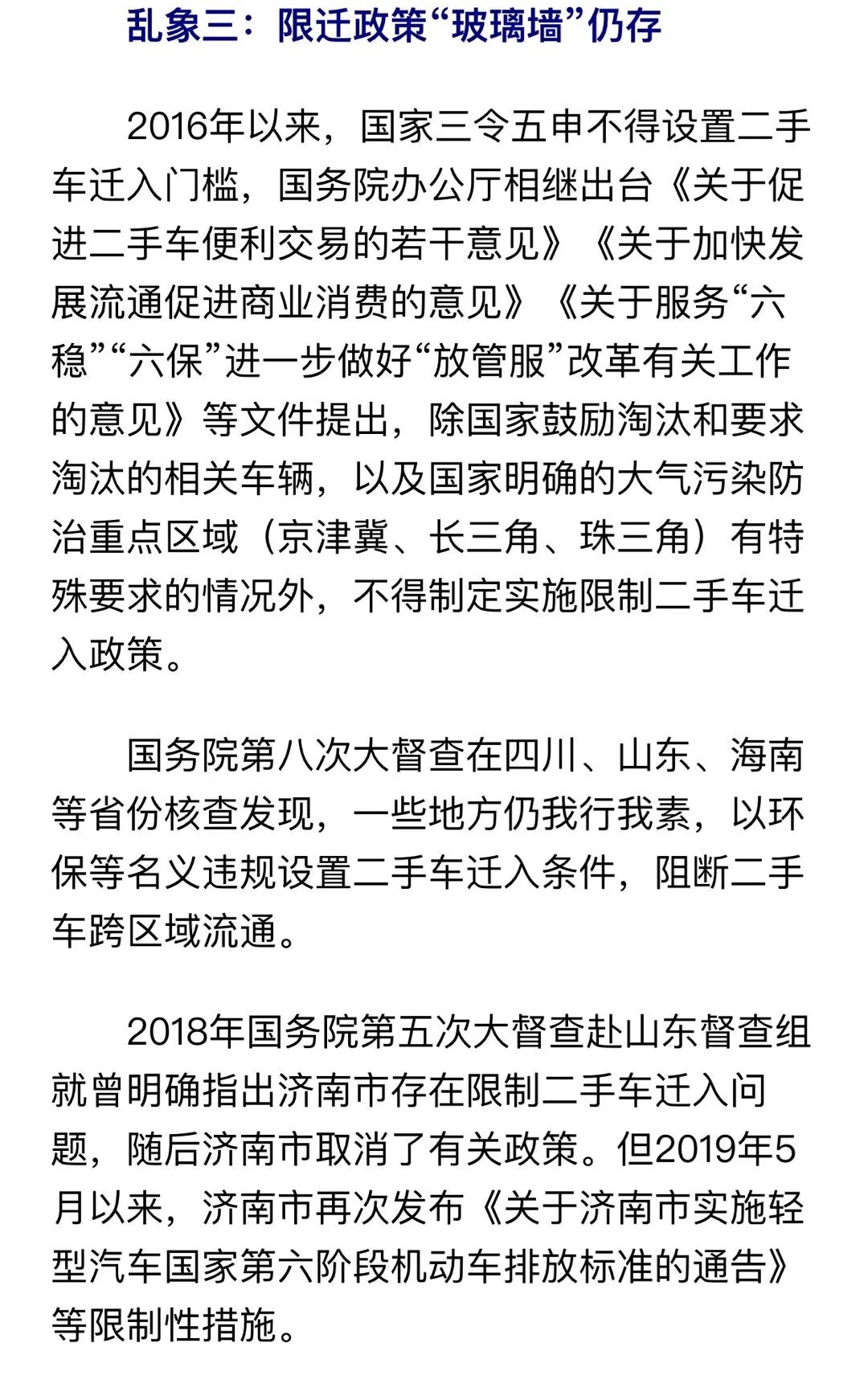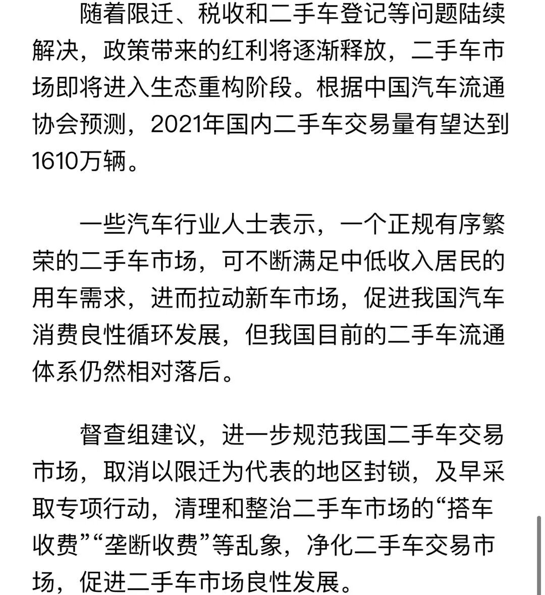 近年来,为加快二手车流通,国务院办公厅印发《关于促进二手车便利交易的若干意见》,取消地方性二手车迁入限制性政策。