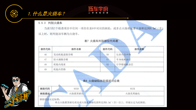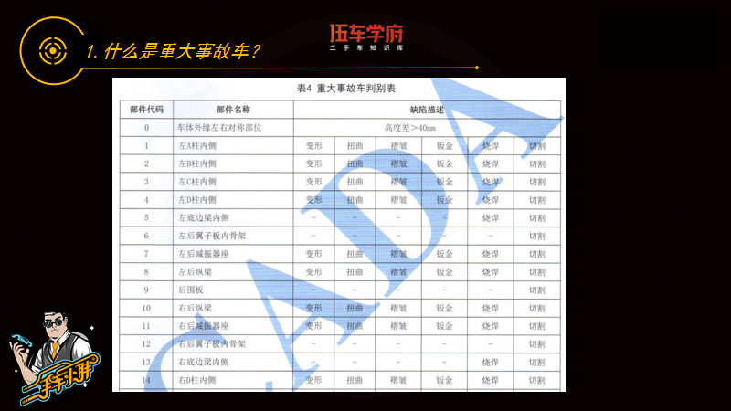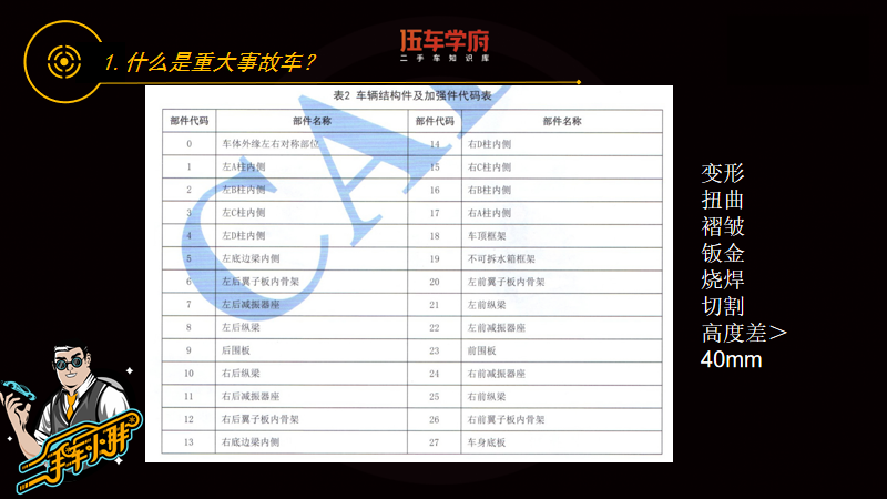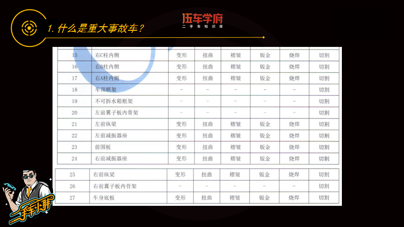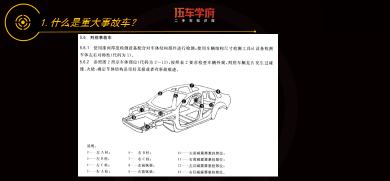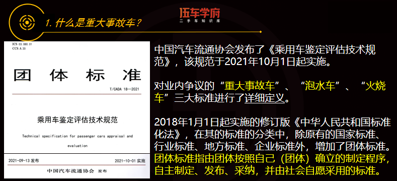 图文资料专业部分来自于中国汽车流通协会《乘用车鉴定评估技术规范》团体标准,实施日期2021年10月1日。