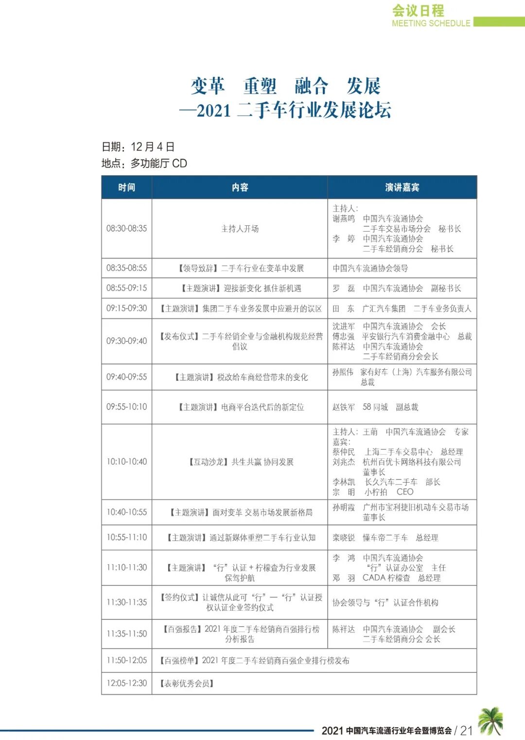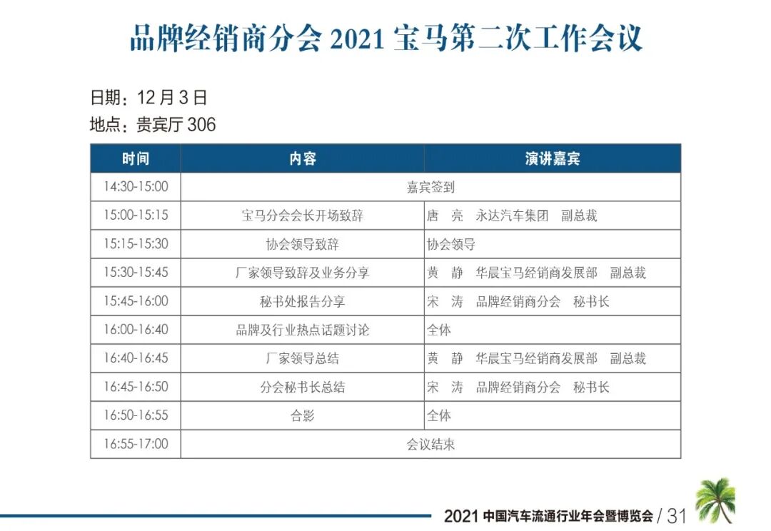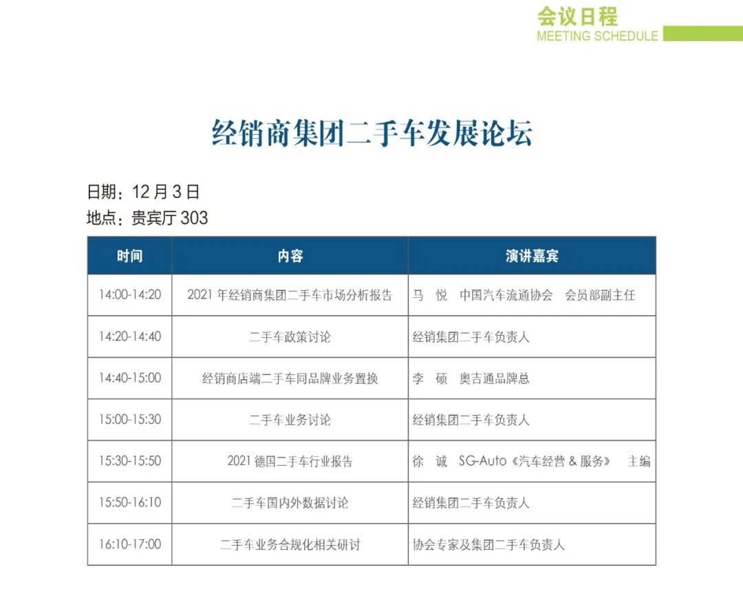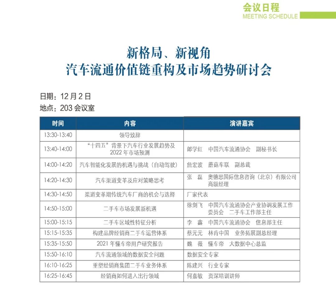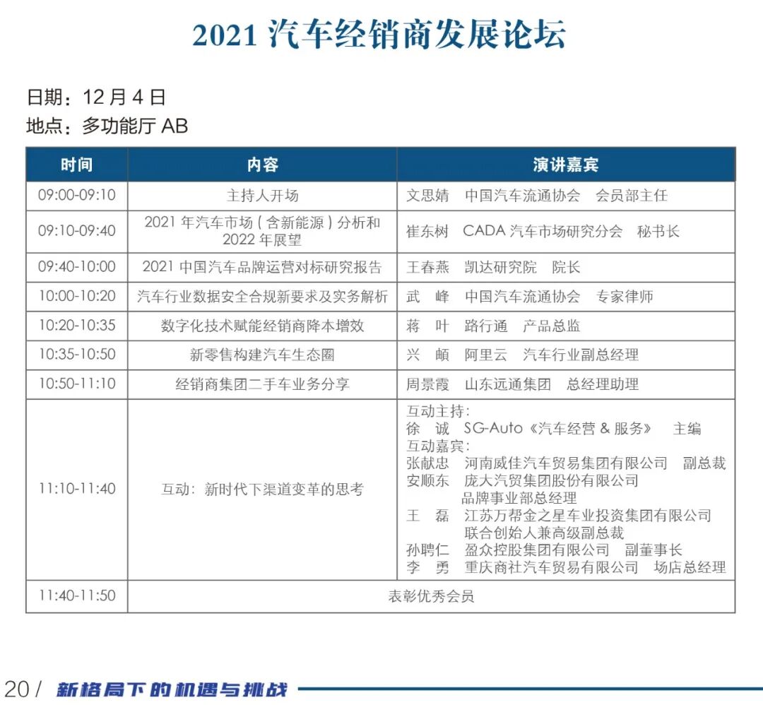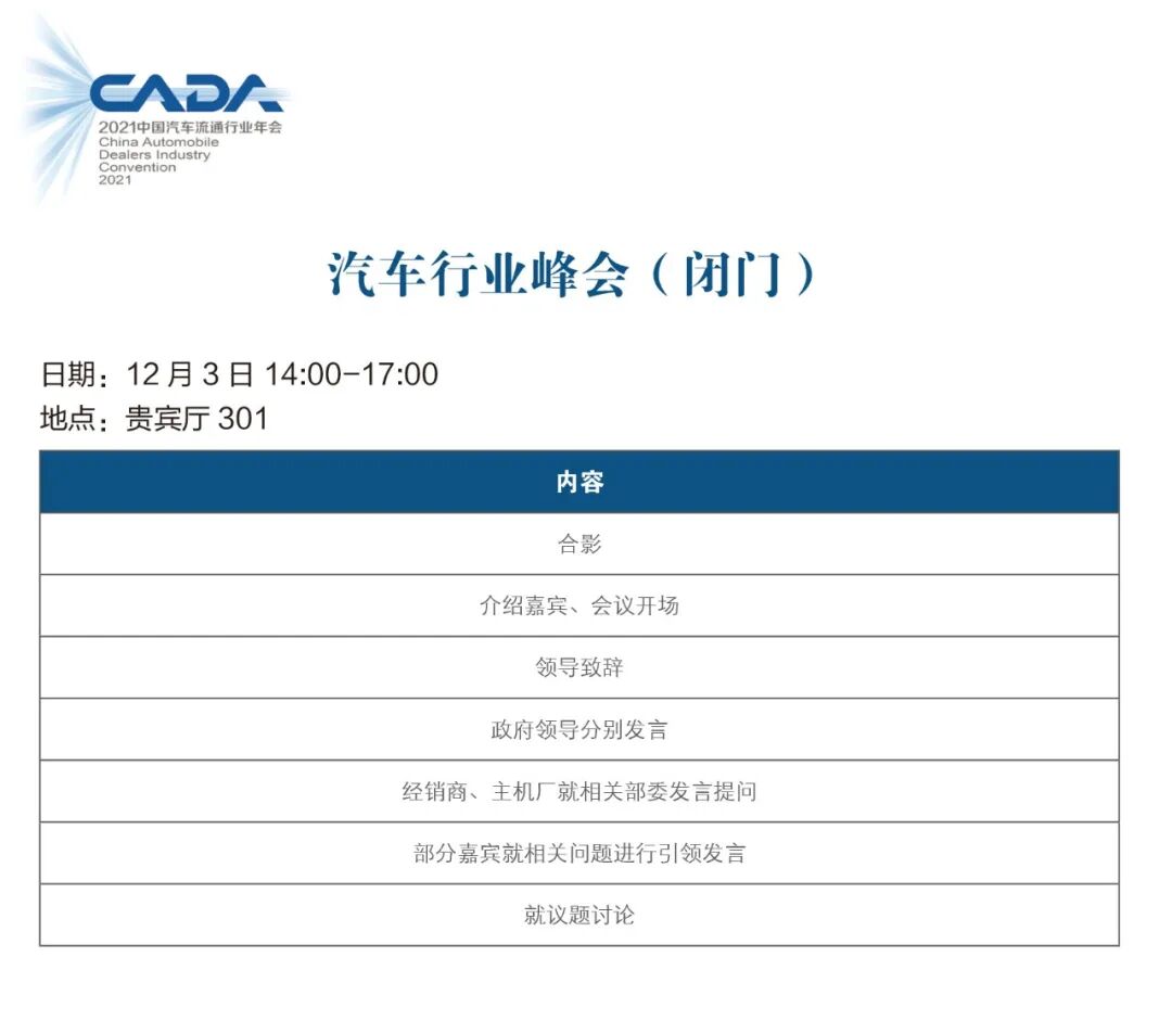 2021年,中国汽车流通行业年会,日程总览