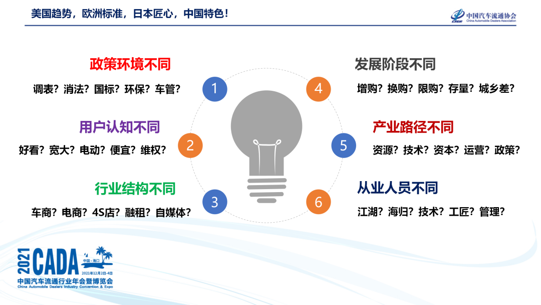德国、美国的东西,我觉得中国是不一样,我们可以借鉴但是不能照搬,我们跟国外比我们的政策环境是不一样的,比如说二手车我们有租赁运营、网约什么的,很多国家是没有的,而我们的消费者方面的维权法规都完全不一样。