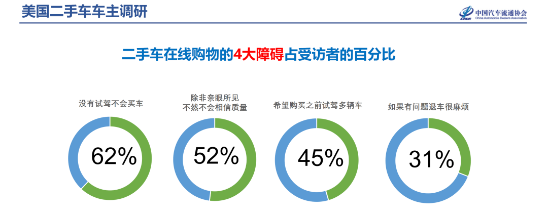 其实,对于二手车试驾这件事,国外很多数据,咱们流通协会就已经发布了一些,没有实际体验购买二手车比例转化明显不好,美国超过62%的客户有需求,中国估计要超过92%了!