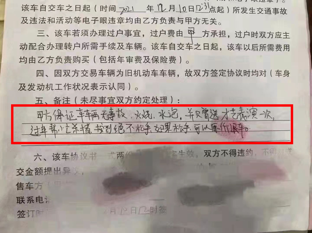 A品牌4S店卖了一台二手车,销售正好要离职,合同附加备注写着“承诺此车无任何事故、无任何瑕疵、无任何纠纷”,结果公司从上到下合同签署没有一个人有异议!