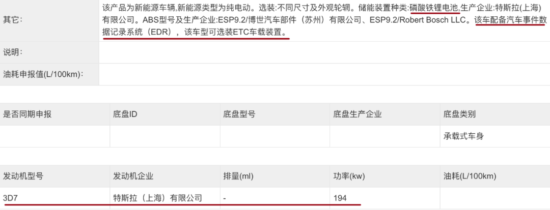 此外,最新申报的Model 3和Model Y均配备汽车事件数据记录系统(EDR),并可选装ETC车载装置。EDR全称是Event Data Recorder,用于记录车辆碰撞前、碰撞时、碰撞后三个阶段中汽车的关键运行数据(包括速度、ABS状态、安全带状态等)。