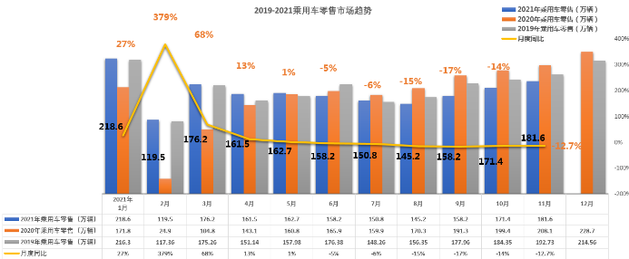 根据相关数据显示,2021年1-11月,中国汽车市场新车累计销量已达到2348.9万辆。在此基础上,中汽协预测,2021年全年中国车市新车销量将达到2610万辆,同比增长3.1%。