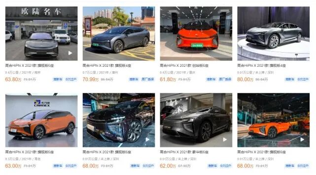 高合HiPhil X:新车57-80万,1年车龄二手车48-70万