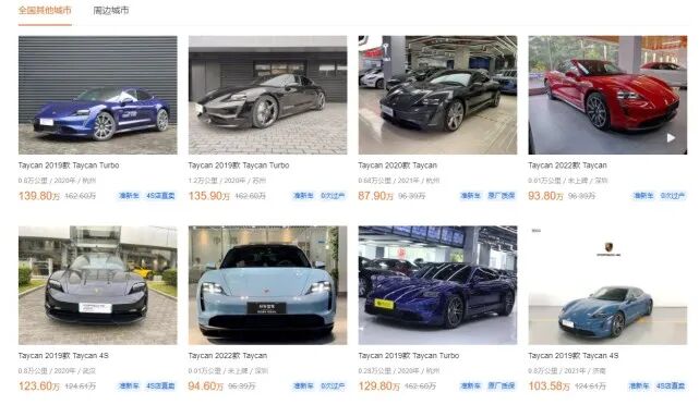 保时捷二手车价格有多坚挺?去年的卡宴,开2万公里,今年最高时候还能发票价回购,而Tyacan这款电动车就不行了,目前市场上看似很多二手车,实际卖不动,价格比较虚,真喜欢,可以去“杀价”了,反正这些二手车老板也都是“赔本过年”心态当时估计替店里“背任务”不得不拿的。