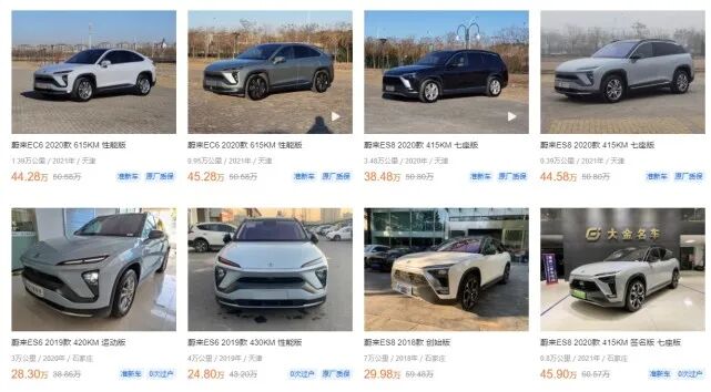 ES8,老车龄二手车能碰到,但是后期问题也不少,建议一定要检测,ES6市场也开始多起来,各种什么充电权益要注意,EC6对于二手车商家来说,不算好卖,多砍价!