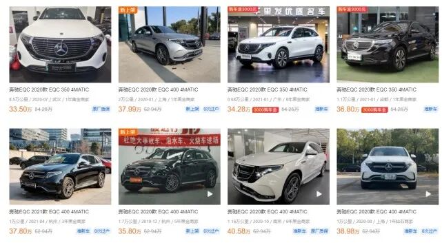 奔驰EQC:新车49.98-57.98万,1年车龄二手车35-40万