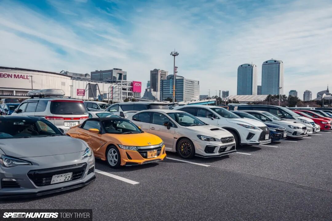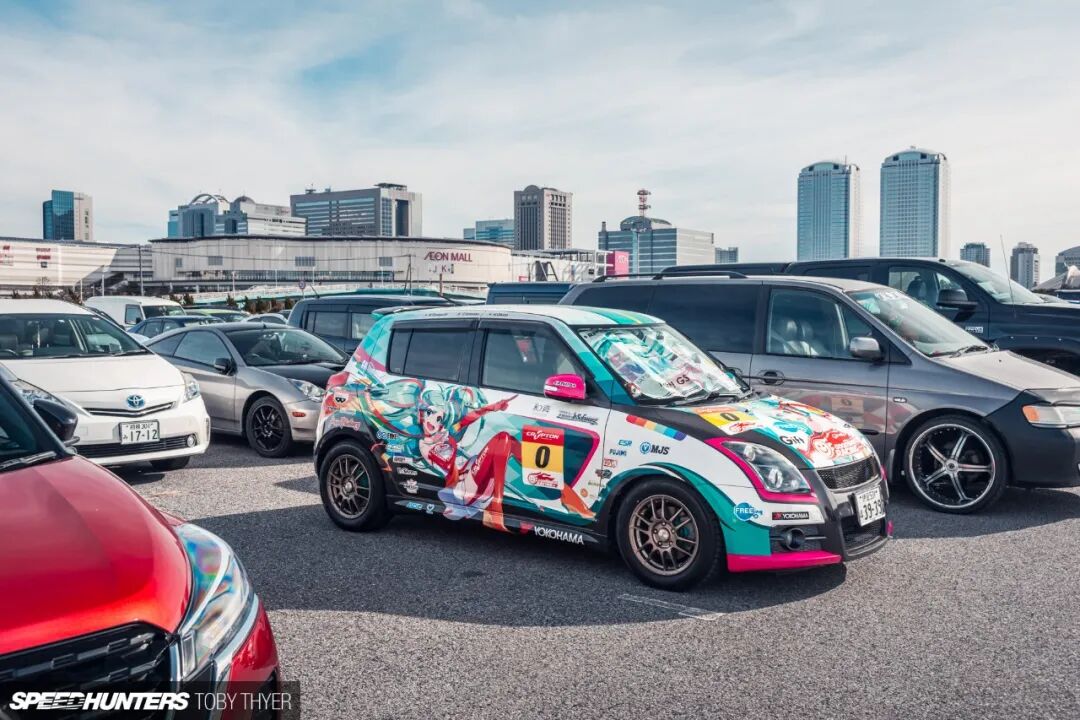 东京改装车展举办地Makuhari Messe(千叶幕张国际展览中心)的停车场有两个足球场那么大,靠步行穿过需要足足 20 分钟,而且还要再走 15 分钟才能到达展馆,简直就像迷宫一样。不过请不要恼火,TAS 期间的这个停车场可是大有看头!