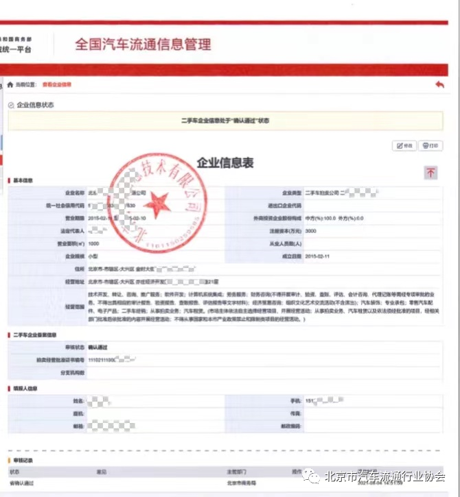 ( 一) 企业在本市的二手车经营备案信息;